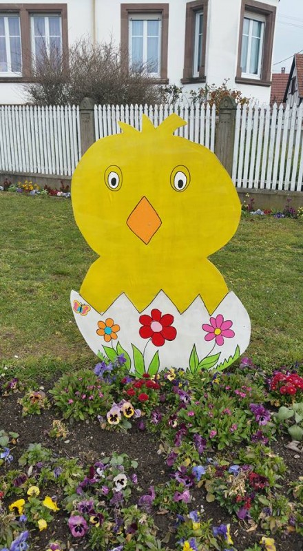 Décorations réalisées par les enfants du périscolaire. …fleurs entretenues par les services extérieurs pour la beauté printanière de notre village…