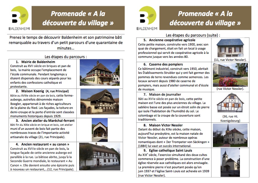 Prenez le temps de découvrir Baldenheim et son patrimoine bâti remarquable au travers d’un petit parcours d’une quarantaine de minutes au départ de la mairie…